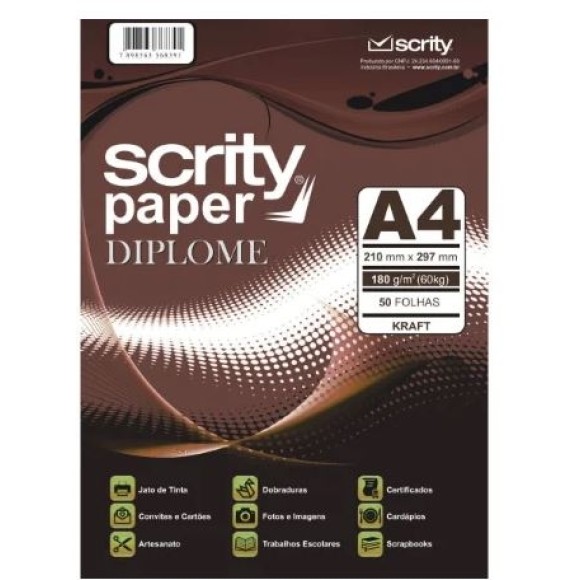 PAPEL A4 KRAFT NATURAL 180 G/M² COM 50 FOLHAS SCRITY