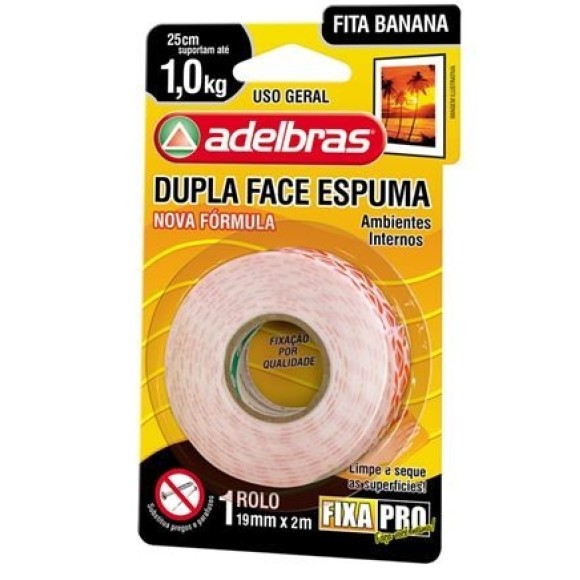 FITA DUPLA FACE ESPUMA 19MM x 2M ADELBRAS