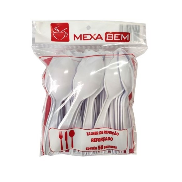 COLHER PLASTCA REFEIÇÃO BRANCA C/50 MEXA BEM