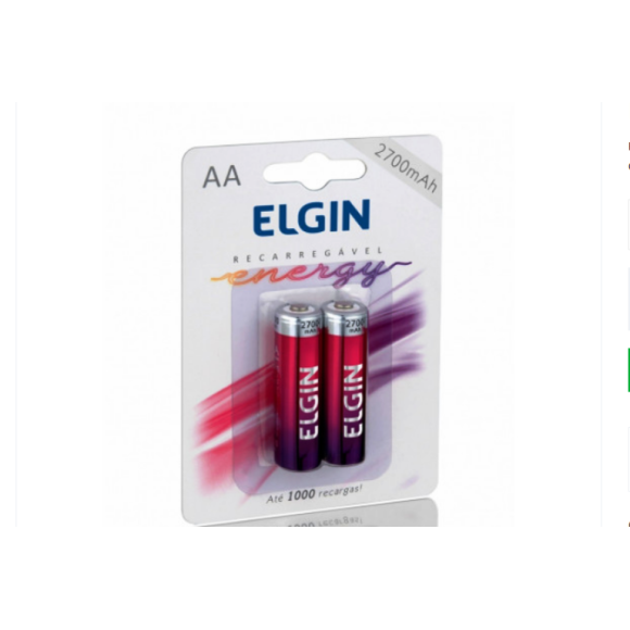 PILHA PEQUENA RECARREGÁVEL AA 2700MAH CARTELA C/2 UNIDADES ELGIN