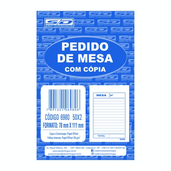 PEDIDO DE MESA 50X2 SÃO DOMINGOS