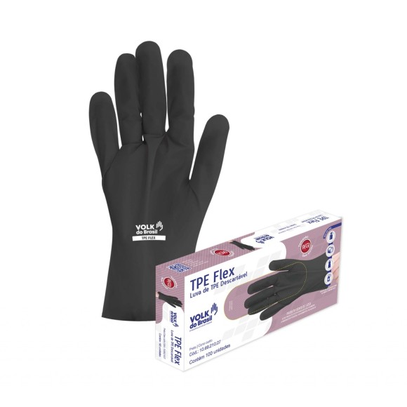 LUVA TPE FLEX M PRETA C/100 VOLK