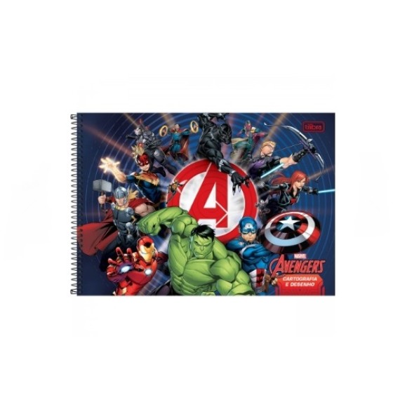 CADERNO DE CARTOGRAFIA E DESENHO AVENGERS DE 80 FOLHAS TILIBRA
