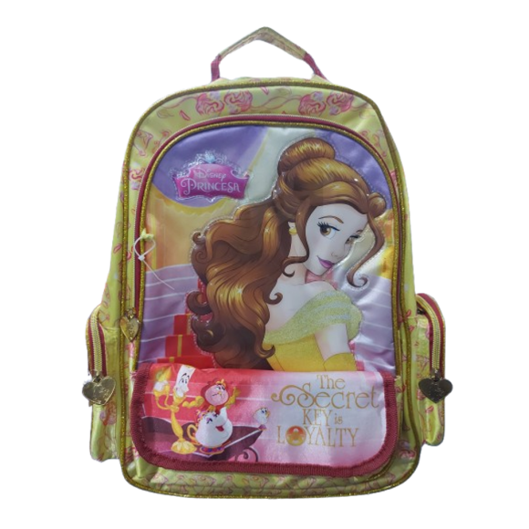 Mochila Escolar Dermiwil Princesas Bela acomoda cadernos universitários, pastas e artigos escolares. Com um amplo espaço interno, facilita a organização e o transporte dos materiais escolares, garantindo muita praticidade, A mochila possui um amplo compartimento interno para organização dos pertences, bolsos laterais e frontal de acesso rápido aos itens, além de alças e costas espumadas para máximo conforto.  O puxador personalizado torna o mesmo do zíper mais prático e estiloso. Acompanha par de luvas de cetim.