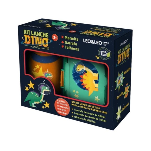 KIT LANCHE DINO MARMITA/TALHER/GARRAFA LEO&LEO