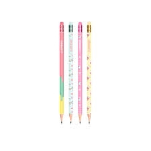 Lápis preto fantasia com borracha / Possui corpo com desenhos variados e redondo / Graduação: HB  / Venda por unidade / Registro Inmetro: 007062/2018 OCP 0061.