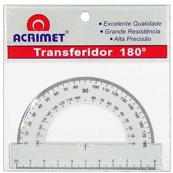 Transferidor em poliestireno, com escala gravada por transferência de imagem, garantindo alta precisão / Possui micro ressaltos na face que entra em contato com o papel para evitar o desgaste da escala / Registro Inmetro: 010011/2013, OCP0040.
