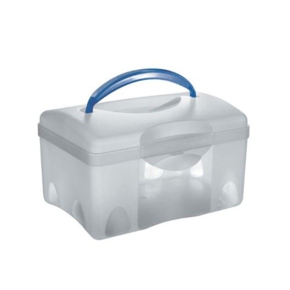 Maleta plástica com tampa / Material: Polipropileno / Dimensão: 214mm x 164mm x 129mm.