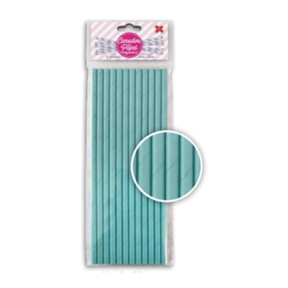 Canudo de papel biodegradável Azul Claro / Medidas: 6mm x 200mm / Embalagem com 12 unidades.