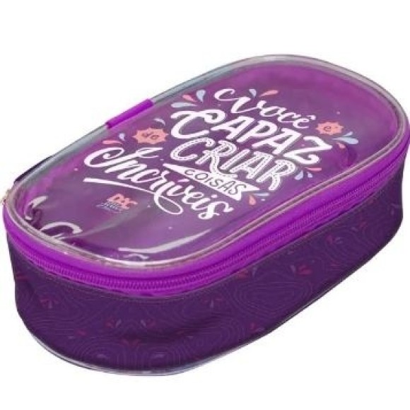Estojo decorado e inspirador feito para encher a vida de cor! Com a tampa transparente, você enxerga bem o que esta guardadinho lá dentro / Fechamento em zíper / É profundo e cabe mais ou menos 70 lápis e canetas (quantidade variável) / Ideal para organização e proteção de canetas, lápis e material escolar em geral / Composição: Tecido e PVC Cristal / Formato: 18,7cm x 10,5cm x 4,3cm.