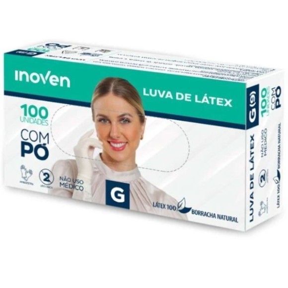 LUVA DE LÁTEX G COM PÓ NÃO CIRURGICA CAIXA C/100 UNIDADES INOVEN