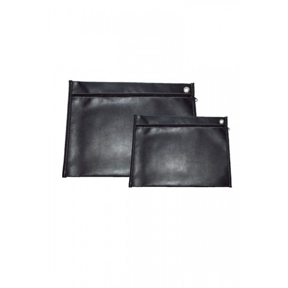Malote costurado em corino preto é ideal para transporte de valores, documentos etc / Formato ofício / Em PVC corino luxo, com ziper e Ilhós / Medidas  (260MM X 375MM)