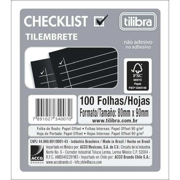 O Tilembrete é perfeito para anotações do dia a dia. Com formato compacto e folhas destacáveis, cabe na bolsa, em uma gaveta ou pode ficar em cima da mesa ou escrivaninha, para facilitar a criação de checklists importantes. Este modelo possui 100 folhas soltas, no tamanho 80 x 91 mm, com gramatura 90 g/m² cor preta e diagramação com checklist. Sabe o motivo do Tilembrete ter esse formato? É justamente para ajudar você ter mais objetividade. A ideia é bater o olho no papel e identificar rapidamente o que está anotado.