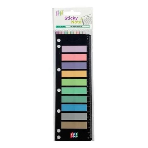 Produto multifuncional: régua, para fazer anotações, marca páginas e com 10 blocos de marcadores de página (index) transparentes em tons pastel