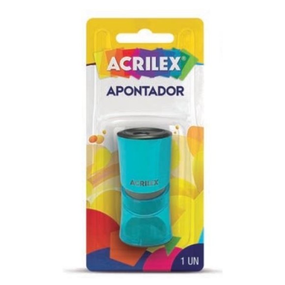 Especificação: Apontador com depósito Acrilex / Aponta lápis padrão / apontador branco e corpo colorido com o depósito transparente / Lâmina de aço / O depósito para resíduos tem ótimo espaço interno o que evita sujeira no estojo / Produto Certificado INMETRO (Artigo Escolar/Segurança) – Registro 003788/2016.