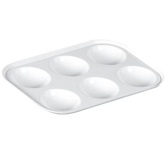 Godê plástico com 6 cavidades / Utilizado para pinturas simples que não necessitam de muitas cores / Medidas: 13,9 x 9,5 x 1,4cm (CxLxA)