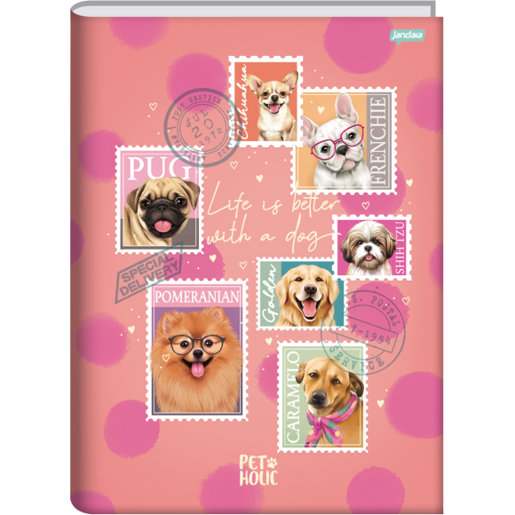 CADERNO UNIVERSITÁRIO 80FLS CAPA DURA BROCHURA PET HOLIC JANDAIA