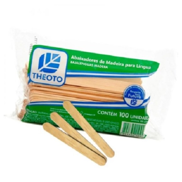 2. PALITO ABAIXADOR DE MADEIRA PARA LÍNGUA COM 100 UNIDADES THEOTO