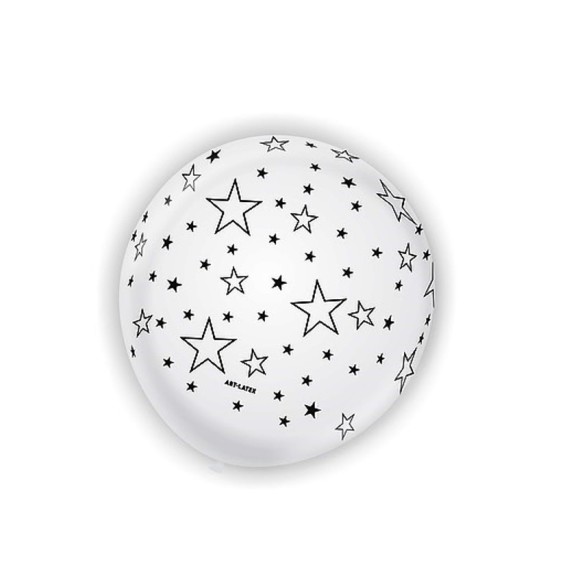 BEXIGA Nº11 ESTRELINHA BRANCO/PRETO C/25 UNIDADES ART-LATEX
