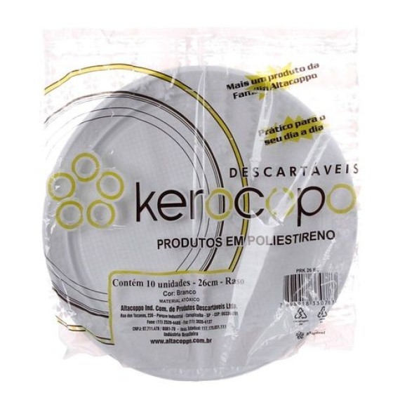PRATO PLASTICO RASO BRANCO 26CM C/10 KEROCOPO